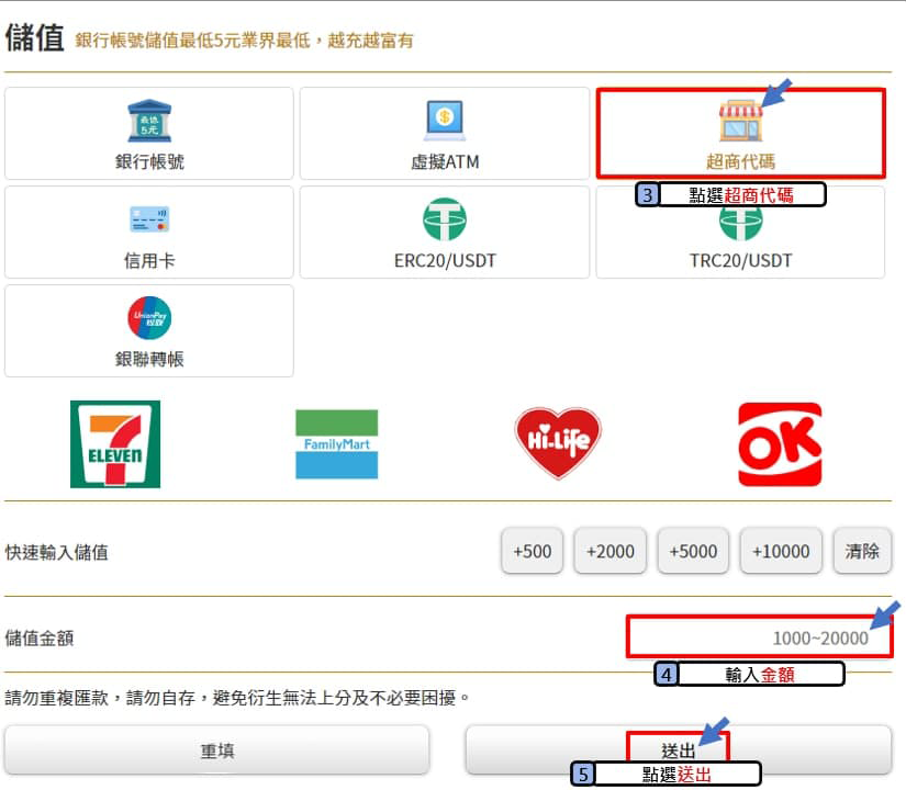 • 超商儲值