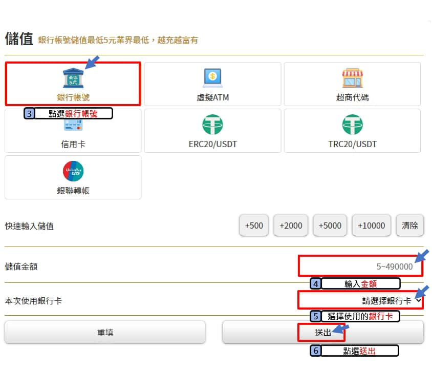 • 銀行儲值